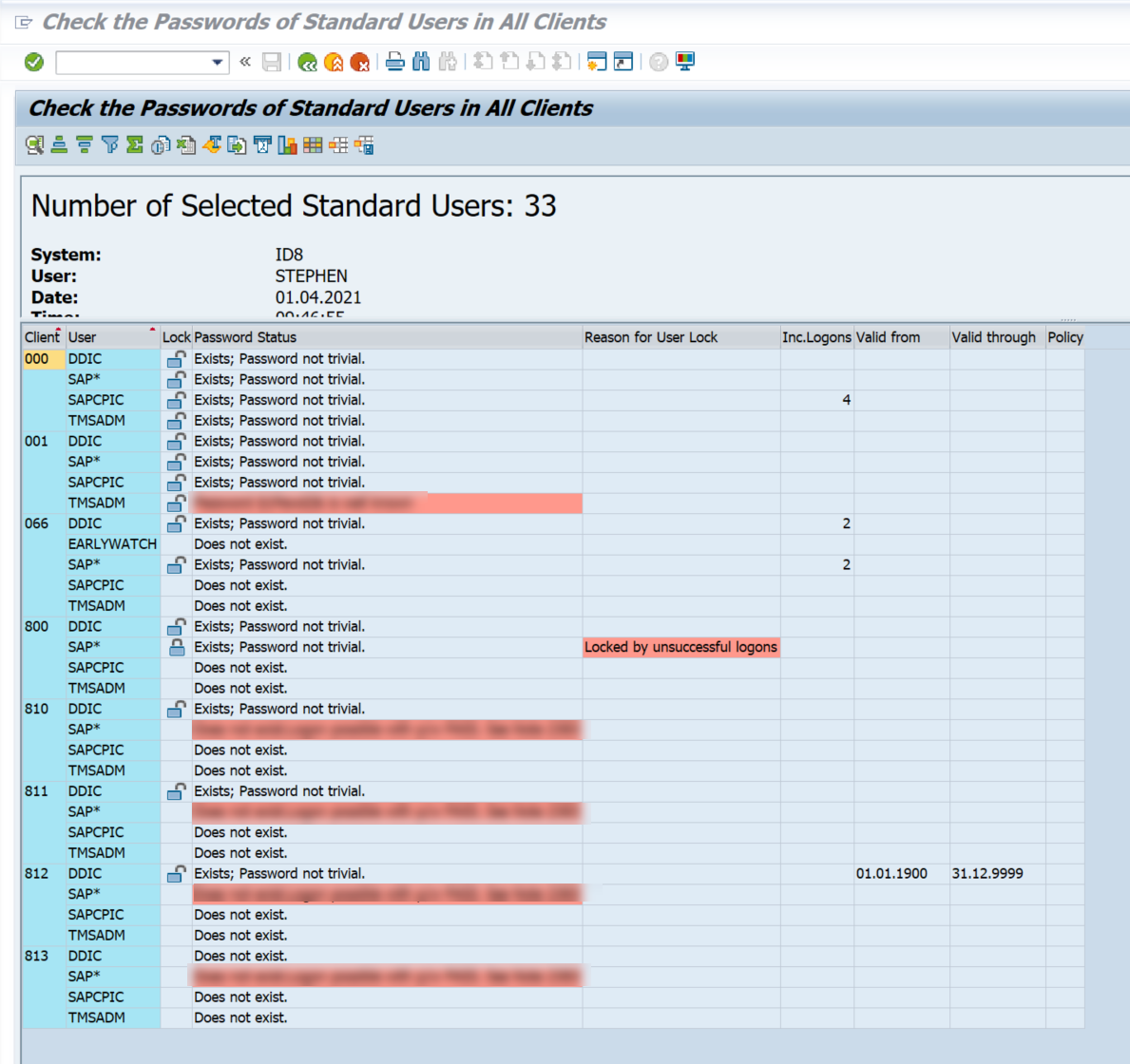 The RSUSR003 event is used in SAP to check the passwords of standard users in all clients.