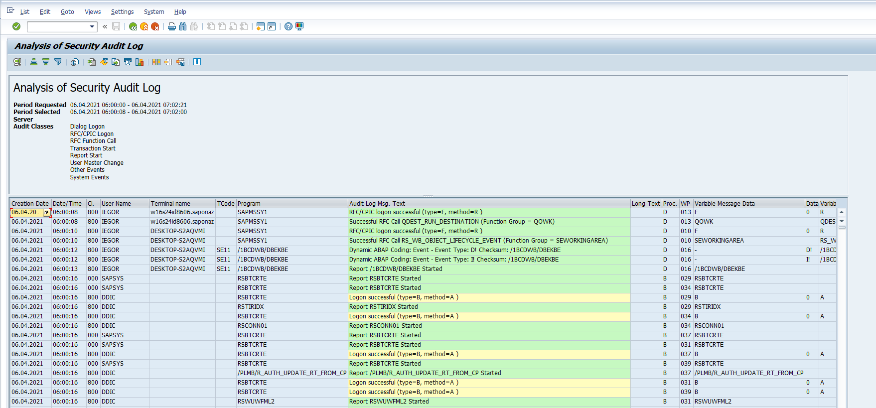 Correlate the data from the system audit log with other data points such as user log-ins and authorization objects to identify potential malicious behavior.